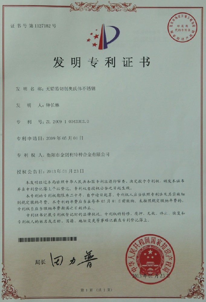 衡陽市金則利特種合金股份有限公司成立于一九九九年十二月,注冊資本人民幣兩千兩百萬元。注冊地址:衡陽市雁峰區(qū)白沙洲工業(yè)園長塘路2號。公司主營耐蝕軟磁合金,為湖南省高新技術(shù)企業(yè)。公司自成立以來,即致力于耐蝕軟磁合金的研發(fā)。 研制出的JL-31(00Cr13si2Pb)、JL-31B(00Cr13si2)、JL-31BS(00Cr13Si2S)、JL-37B(0Cr17Si2)、JL-37(0Cr17···